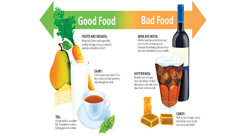 - Increase intake of ‘detergent foods’ or foods rich in fibre and low in sugar (apple, celery sticks, raw carrots, cheese, nuts and even popcorn!). This type of food gives good exercise to the gums and also stimulates the saliva flow, reducing incidences of caries.