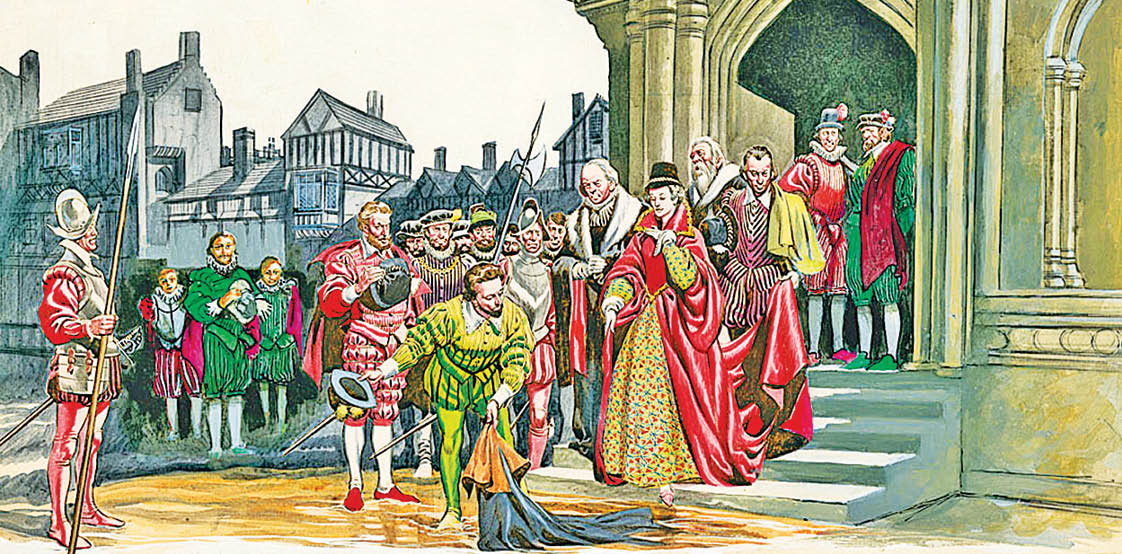QE I, alias the Good Queen Bess did not want to get her farthingale skirt dirty whilst going across a mud puddle. She gave that famous helpless-feminine look to which we are all susceptible, and lo! The chivalrous Sir Walter Raleigh lay down his rich cloak for the Virgin Queen to tread over. She did. The cloak did not even belong to Raleigh…