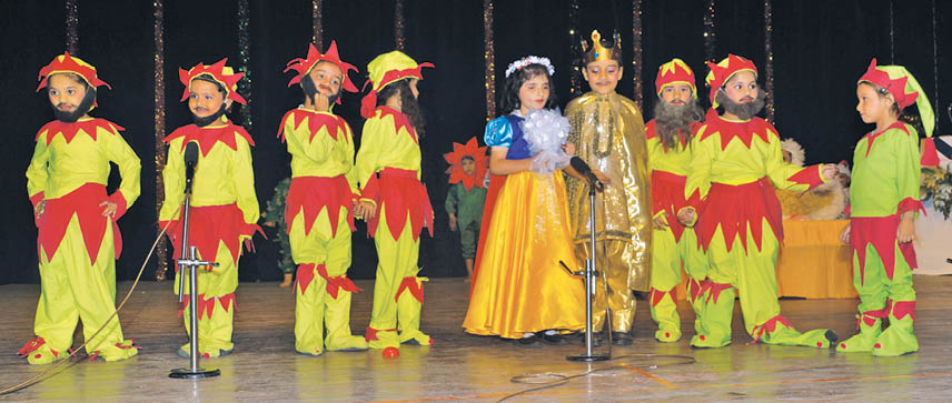 The auditorium was packed with the chirpy school girls and their proud parents. The function started with the rendition of the National Anthem, followed by the school anthem sung enthusiastically by the students of the 10th Grade. This was followed by a song sung by the students of Class I and II, dressed in delightful costumes, which delighted the audience. A couple of skits enacted by students of the primary grades had the audiences once again cheering as the girls stole their hearts with their performances in ‘Snow White And The Seven Dwarfs’ and ‘Techno Geeks’.
