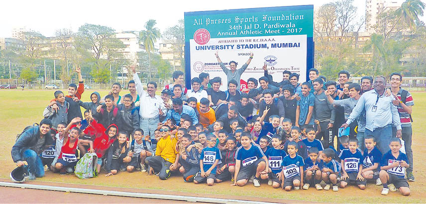 All-Parsees Sports Foundation – under the auspices of the Navroz Baug Play Centre (NPA); Mancherji Edalji Joshi Memorial Trust (MEJMT), Cusrow Baug United Sports and Welfare League (CBUSWL), Federation of Zoroastrian Associations For Welfare and Culture (FOZAWAC) – organised the 34th Jal D Pardiwala All Parsees Annual Athletic Meet on 4th and 5th February, 2017, at the University Stadium, Marine Lines, sponsored by Zoroastrian Bank, World Zoroastrian Organisation Trust, Zarine and Yazdi Daruvala Charitable Trust, Hilla Builders and Bombay Parsee Punchayet.