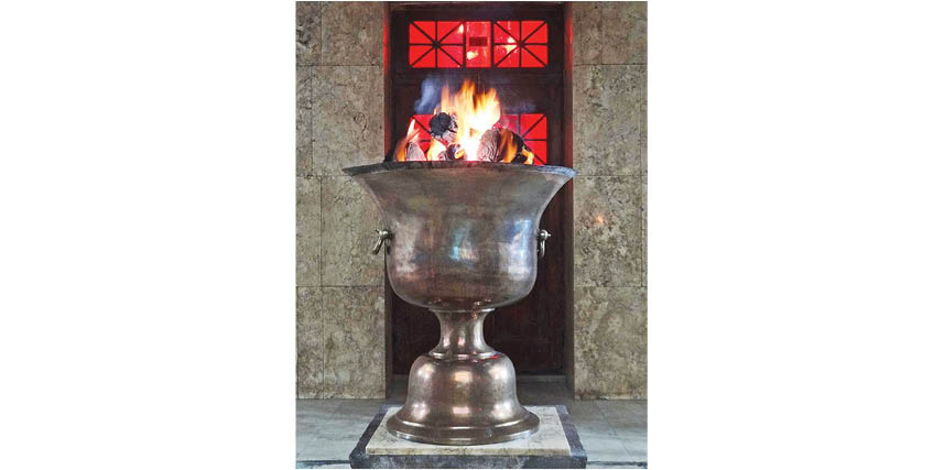 Installation of the Consecrated Fire: On the appointed day of installation, one Yasna is done with the invocation to Sarosh Yazad on the amalgamated consecrated fires. Then the sacred fire is ceremoniously taken in a procession by priests in their complete priesthood regalia holding spears, swords and gurz (mace) in their hands for the protection of the sacred fire, which is now referred to as their ‘king’ or pādshah.’ Lay people too follow this procession.
