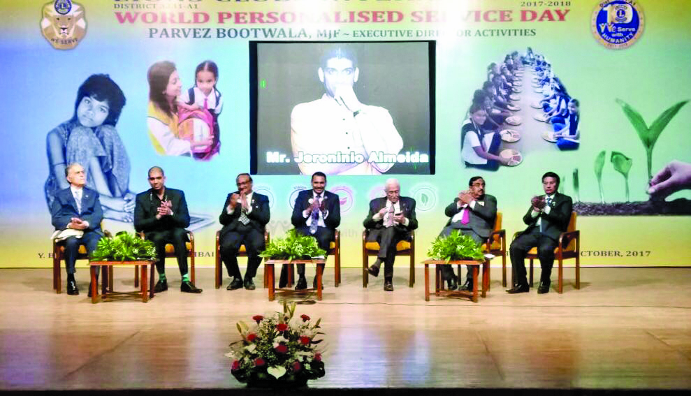 Lions Clubs International (LCI) celebrated World Personalised Service Day on 7th October, 2017, at the YB Chauhan auditorium. Organised by Executive Director for activities, Lion Parvez Bootwala and compered by Fatema Bootwala, the event witnessed keynote speaker and celebrated motivational orator, Jeroninio Almeida elucidate the power of humility, oneness and the joy of giving. Thereafter, the clubs were felicitated for the various projects executed during the service week which include medical camps for diabetes and cancer detection, hunger projects, cataract surgery, children’s education, welfare of senior citizens and other landmark projects, worth over Rs.1.5 crore. Several live projects at the venue were also attended by the Chief Minister of Maharashtra, Devendra Fadnavis.