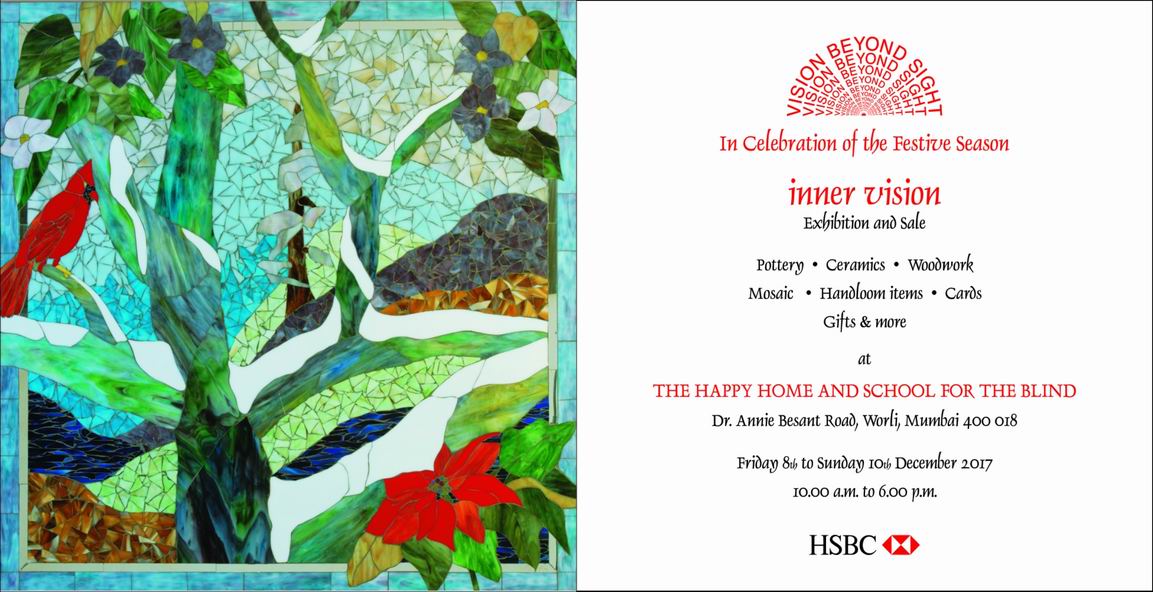 In keeping with the festive season, the Happy Home and School for the Blind (HHSB) presents ‘Inner Vision – Exhibition and Sale’ from 8th to 10th December, 2017. Hosted at their very own haven on Dr. Annie Besant Road, Worli, Mumbai – 18, the annual exhibition offers exquisite handicraft items such as woodwork, mosaic, handloom items, cards, gifts, as well as pottery and ceramic items, carefully designed and crafted by the school’s visually impaired children, along with the help of a dedicated team of