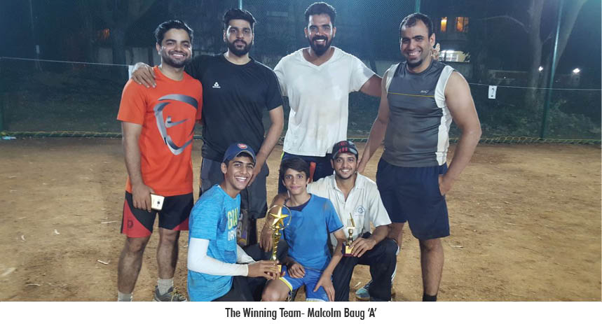 Malcolm Baug organised the Annual Box Cricket tournament on 13th and 14th January, 2018 at the newly constructed enclosure at the Baug’s Gymkhana. Over twelve teams participated, with Malcolm Baug ‘A’ and Salsette qualifying for the finals. Malcom Baug ‘A’ bowled and fielded well to restrict the opponents who set a target of 54 runs in 5 overs. Great performances by opening batsmen Malcolm Baug’s Rushad Parbhoo and Shahvir Afshari clinched the win. Rushad Parbhoo was adjudged ‘Player of the Tournament’.