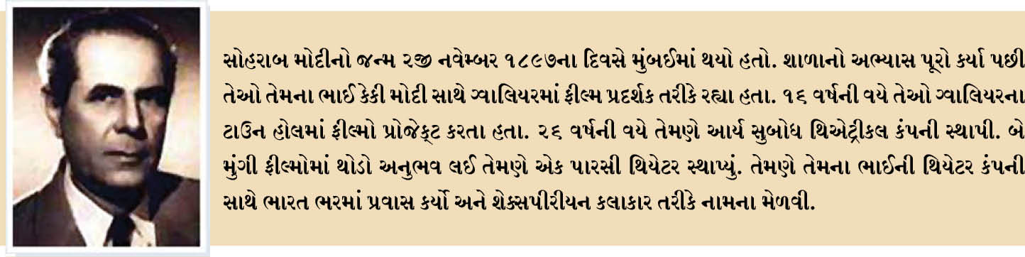 સોહરાબ મોદીના 2જી નવેમ્બરે આવતા જન્મદીનને દિવસે તેમને યાદ કરતા…