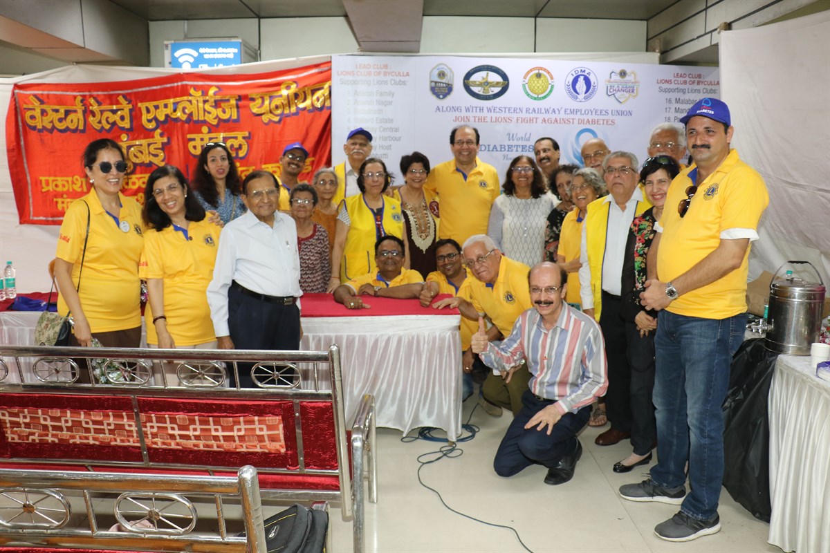 On the occasion of ‘World Diabetes Day’, the Lions Clubs of District 3231 – A1 and Multiple District 3231, along with Indian Drug Manufacturers’ Association (IDMA) and Western Railway Employees Union (WREU), organized a ‘Diabetes Awareness and Free Check-Up’ camp at Churchgate Station on 14th November, 2018. Inaugurated by DRM, Sanjay Mishra; 2nd Vice District Governor, Lion Rajkumar Gupta and Chairperson, CSR – Multiple District 3231, the three unanimously worked towards raising awareness about diabetes, followed by Hon. Secretary, WREU, Prashant Kanade addressing the gathering about the health problems faced by railway employees and how the union is helping their employees fight diabetes. The event witnessed over three hundred and seventy-five people signing up for the health check-up, of which a hundred and twenty people were reported to have diabetes. The event concluded with Lion Daara Patel thanking all thirty Lions Clubs, including the Lead Club – Lions Club of Byculla for supporting this camp, and appreciated the excellent support provided by Apollo Hospital.