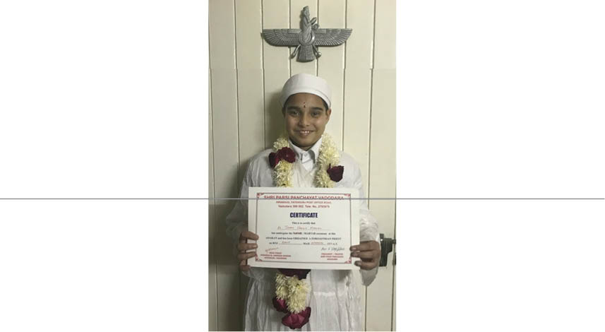 13-year-old, Er. Jehan Madan, son of Hutoxi and Farokh Madan, was ordained Martab on 2nd January, 2019, at Dadabhai Umrigar Adarian, Fatehgunj, Vadodara, under the guidance of Er. Hormazdiar Bhesania and Er. Kersi Bhesania. A student of Std. VIII at the Delhi Public School, Gurgaon, Jehan has been performing jashans and navjote ceremonies at the Delhi Parsi Anjuman ever since he was ordained Navar in June 2017.