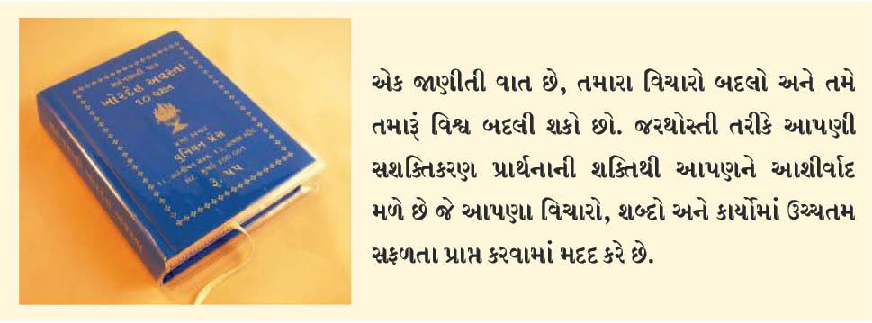 એક જાણીતી વાત છે, તમારા વિચારો બદલો અને તમે તમારૂં વિશ્ર્વ બદલી શકો છો. જરથોસ્તી તરીકે આપણી સશક્તિકરણ પ્રાર્થનાની શક્તિથી આપણને આશીર્વાદ મળે છે જે આપણા વિચારો, શબ્દો અને કાર્યોમાં ઉચ્ચતમ સફળતા પ્રાપ્ત કરવામાં મદદ કરે છે.