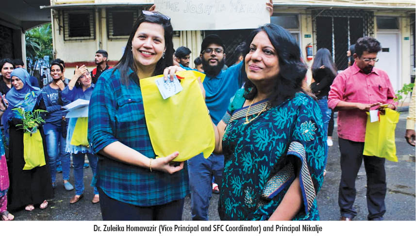 Under the able leadership of Principal Anna Pratima Nikalje and Vice Principal/SFC Coordinator, Dr. Zuleika Homavazir of Wilson College, the students of the BMS Department are taking strong and meaningful steps towards greener change in the society. In the 12th year of their CSR – HOPE Initiative, they have decided to work towards creating a Green India. The students celebrate the essence of ‘Van Mahotsav’ – an initiative of the GoI’s Forest Ministry, celebrated from 1st to 7th July, 2019, focusing on ‘Deforestation’ and aiming at creating awareness and a positive impact in society. To further empower this initiative, the BMS students have coined #TheJoshIsGreen challenge, to take place during this period, which will have people across the country being challenged to plant at least one tree in their vicinity, after which they would be challenging two other people to plant trees in their respective neighbourhoods. Free plant sapling were distributed and stalls were set up, with the help of the Forest Department, under the guidance of Division Forest Officer (DFO) – ACF Lachke of LRP, Thane. On 9th July, the students plan to plant over 1200 saplings at Rabale area, with a vision of creating a healthier and happier tomorrow.