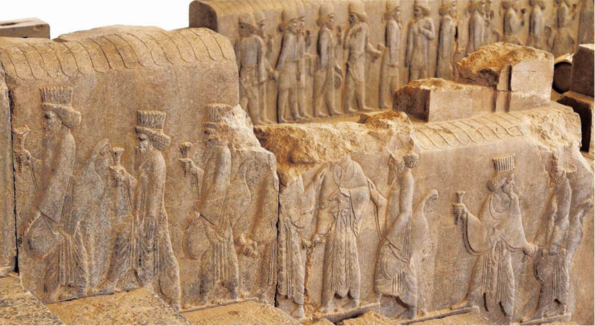 The ruins of Apadana Staircase show off and offer scenes of historic Persian arts to its domestic and foreign visitors. The lavishly decorated monument draws hundreds of domestic and foreign visitors every single day, who gaze at the depicted splendour of the mighty Achaemenid Empire (550 –330 BC) and the grandeur of its fabled arts.