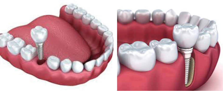 Simply put, Dental implants are replacements for missing teeth. When teeth are extracted due to decay or infection, Dental Implants are placed in the jaw. These Implants form the foundation or support for the missing tooth, and provide the same function as that of the original extracted tooth.