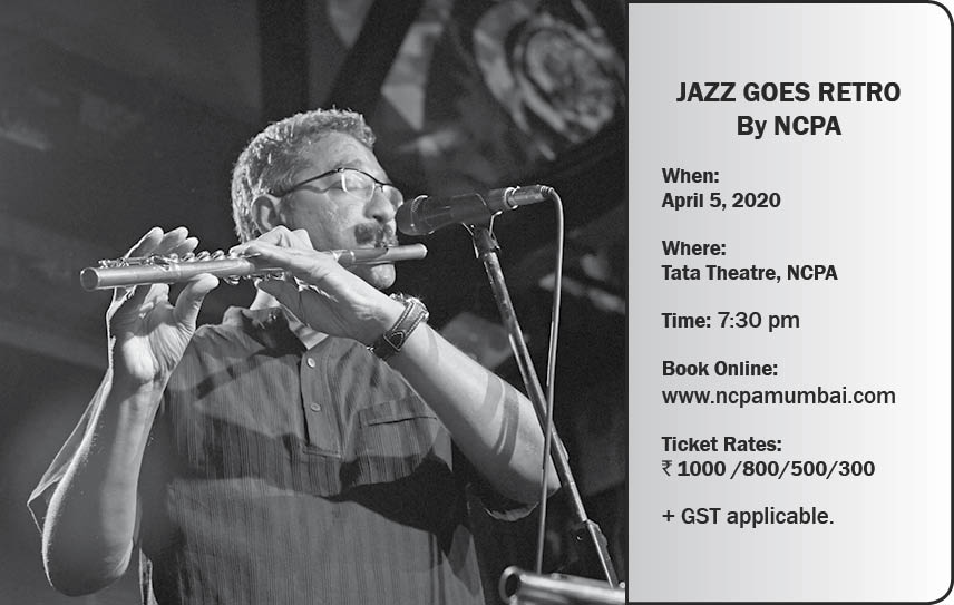 NCPA presents ‘JAZZ GOES RETRO’ – the greatest hit songs ever – all Jazzified! These include timeless songs of Michael Jackson, Madonna, Elton John, Sting, Rolling Stones, Led Zeppelin, Doors, Eric Clapton and many more, performed by a jazz band stellar musicians including Rajeev Raja (Flute); Rahul Wadhwani (Piano); Manfred Weinburger (Trumpet); Sanjay Divecha (Guitar); Jarryd Rodrigues (Alto Sax); Rhys Sebastian (Tenor Sax); Saurabh Suman (Bass) and Aron Nyiro (Drums).
