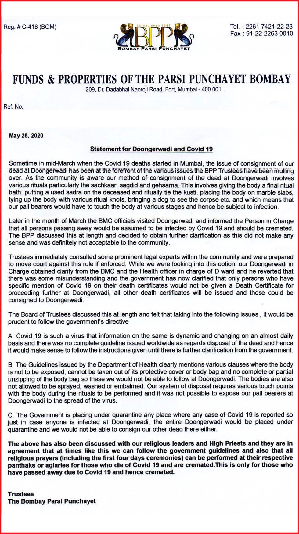 FUNDS AND PROPERTIES OF THE PARSI PUNCHAYET BOMBAY