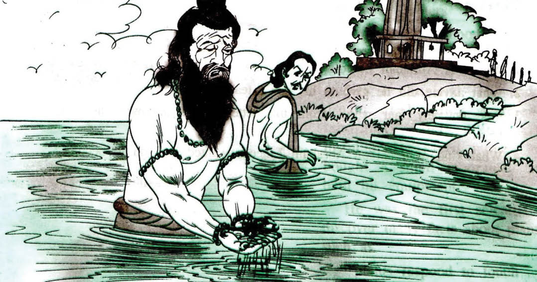 One day, the great sage Durvasa was crossing a river with his disciple. As he was about to reach the shore, he noticed a scorpion struggling against the flow of the river. He bent down and picked up the scorpion, immediately, the scorpion stung his hand and he started bleeding. However, the sage went ashore and set down the scorpion safely under a tree. The scorpion stung the sage one more time before he set him down.