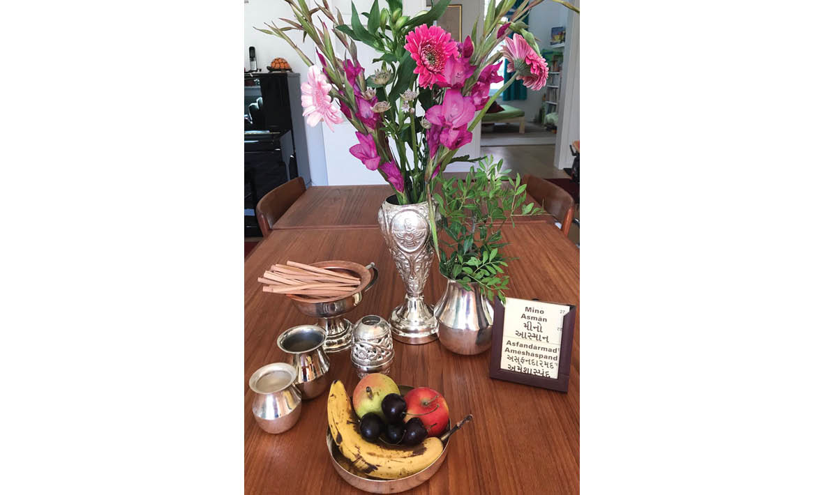 Observing The Muktaad: The Fravardegan days were holidays in the true sense of the word. Parsis would cut themselves away from worldly affairs and engage themselves in offering prayers, night and day. All homes would be cleaned and renovated, weeks in advance. Fire and incense would be kept burning, day and night, especially in that separate room where consecrated metal vases bearing clean well water and fresh flowers are kept on marble topped tables. This can be observed even today. One may have entrusted ceremonial work to the family priest at the fire temple. But a parallel atmosphere can also be created at home with flowers, oil lamps, incense and offering of fruits. Flowers not only help keep the memory of a loved one green, but also create an atmosphere of peace, purity and love. With flowers, oil lamps, fire and the burning of incense, a virtual paradise is created on earth in honour of the visiting fravashis. Surely if one creates the right atmosphere at home, the visiting fravashis will pay your home a visit and bless you.