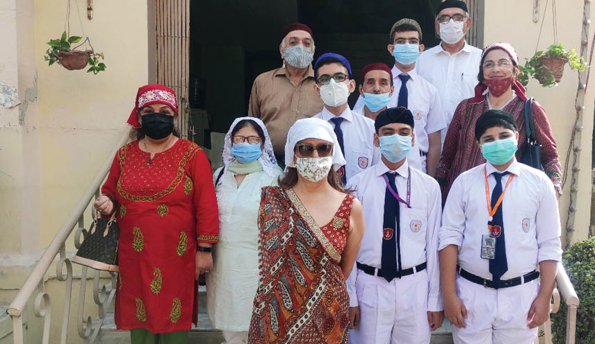 Commencing the celebrations, the school priest, Er. Rohinton Mirza offered the Tandarosti Prayers, praying for everyone’s good health. The students sprinkled rose water and showed a mirror to all who came to see the beautifully decorated table, repeating the phrase, “Ghulab jewa pamarta rhejo, Aarsi jewa chamakta rhejo!” (meaning ‘May you always smell sweet like a rose and shine like a mirror’.) In keeping with the mandatory need for social distancing, no one shook hands or hugged each other, but the heartfelt and joyful greetings with elbow bumps, more than made up for the affection!