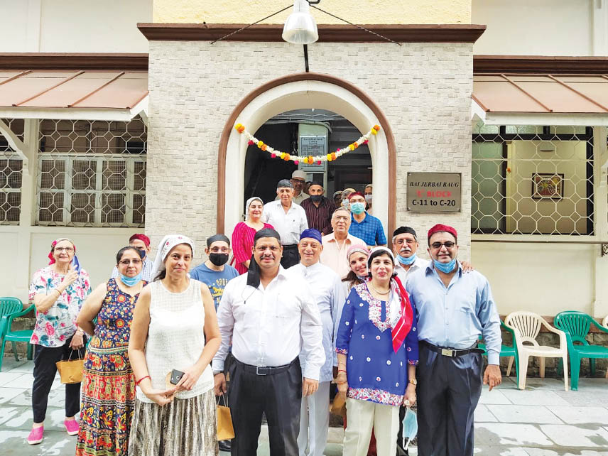 With Wadia Trust’s co-operation, the Block C tenants formed a committee which took on the task of rehauling their building’s exterior structure, painting, new replacements of water pipes and other repairs. After much discussion, debate and effort, not to forget the impact of the pandemic which slowed things down, the building work was completed, and on 21st August, 2021, on auspicious Khordad Saal, a Jashan was performed by the block’s Dasturjis – Kerman Sukhia and Zeus Navalmaneck, commemorating the occasion. The Jashan was attended by BPP Trustees Kersi Randeria and Xerxes Dastur, as well as Percy Siganporia, Secretary, N N & RN Wadia Trust.