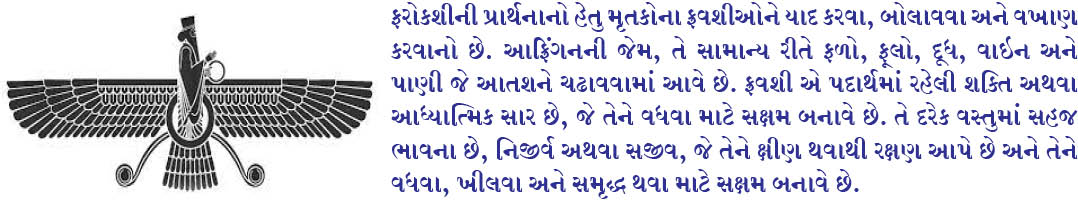 પારસી ધર્મ મૃતકો માટે પૂજનનો ઉપદેશ આપે છે. એવું માનવામાં આવે છે કે મૃત અને જીવિત વચ્ચે કંઈક સંબંધ છે. ચેનલ, જેના દ્વારા સંબંધ ચાલુ રહે છે, તે છે ફ્રવશી, અથવા મૃતકોની માર્ગદર્શક અને વાલી ભાવના, જે જીવંત લોકોની મદદ માટે આવે છે, જો તેઓ શુદ્ધ અને સદ્ગુણ જીવન જીવે છે અને મૃતકોને પૂજ્યભાવમાં રાખે છે.