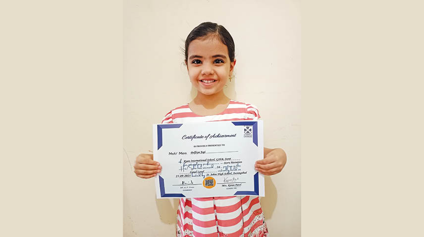 Hearty congratulations to our tiny tot achiever from Surat – Delfryn Kaizad Jogi – currently studying in Senior Kg at Ryan International School (GSEB) Surat, for winning the first prize in the Zonal Level competition of ‘Poem Recitation and Story Narration’, which was recently hosted by St. Johns High School, in Aurangabad. Delfryn topped the Story Narration Competition, much to the delight of proud parents – Taronish and Kaizad Jogi.
