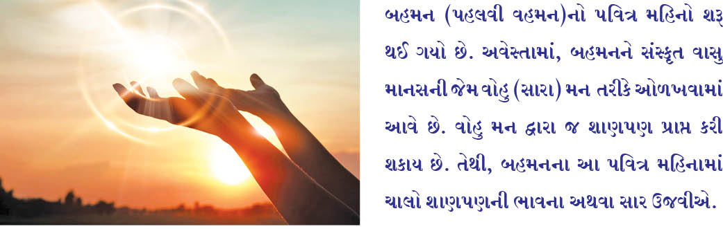 બહમન (પહલવી વહમન)નો પવિત્ર મહિનો શરૂ થઈ ગયો છે. અવેસ્તામાં, બહમનને સંસ્કૃત વાસુ માનસની જેમ વોહુ (સારા) મન તરીકે ઓળખવામાં આવે છે. વોહુ મન દ્વારા જ શાણપણ પ્રાપ્ત કરી શકાય છે. તેથી, બહમનના આ પવિત્ર મહિનામાં ચાલો શાણપણની ભાવના અથવા સાર ઉજવીએ.