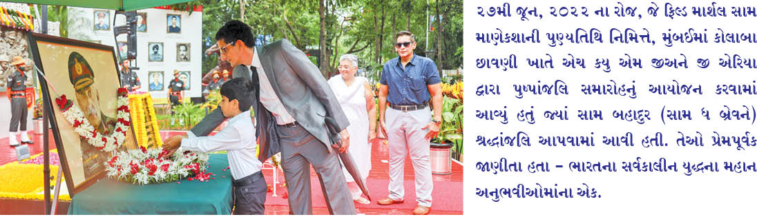 27મી જૂન, 2022 ના રોજ, જે ફિલ્ડ માર્શલ સામ માણેકશાની પુણ્યતિથિ નિમિત્તે, મુંબઈમાં કોલાબા છાવણી ખાતે એચ કયુ એમ જીઅને જી એરિયા દ્વારા પુષ્પાંજલિ સમારોહનું આયોજન કરવામાં આવ્યું હતું જ્યાં સામ બહાદુર (સામ ધ બ્રેવને) શ્રદ્ધાંજલિ આપવામાં આવી હતી. તેઓ પ્રેમપૂર્વક જાણીતા હતા – ભારતના સર્વકાલીન યુદ્ધના મહાન અનુભવીઓમાંના એક.