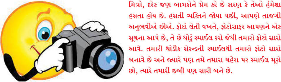 મિત્રો, દરેક જણ બાળકોને પ્રેમ કરે છે કારણ કે તેઓ હંમેશા હસતા હોય છે. હસતી વ્યક્તિને જોયા પછી, આપણે તાજગી અનુભવીએ છીએ. ફોટો લેતી વખતે, ફોટોગ્રાફર આપણને એક સૂચના આપે છે, તે છે થોડું સ્માઈલ કરો જેથી તમારો ફોટો સારો આવે. તમારી થોડીક સેક્ધડની સ્માઈલથી તમારો ફોટો સારો બનાવે છે અને જ્યારે પણ તમે તમારા ચહેરા પર સ્માઈલ મૂકો છો, ત્યારે તમારી છબી પણ સારી બને છે.