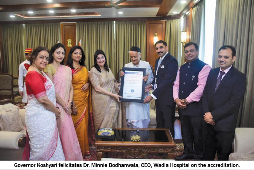 The Bai Jerbai Wadia Hospital for Children located at Parel in Mumbai has become the nation’s first hospital to receive accreditation from the American Accreditation Commission International (ACCI), thus being the only hospital to be granted the status in India. Governor Bhagat Singh Koshyari felicitated Dr. Minnie Bodhanwala, CEO of Wadia Hospital for this achievement and accreditation.