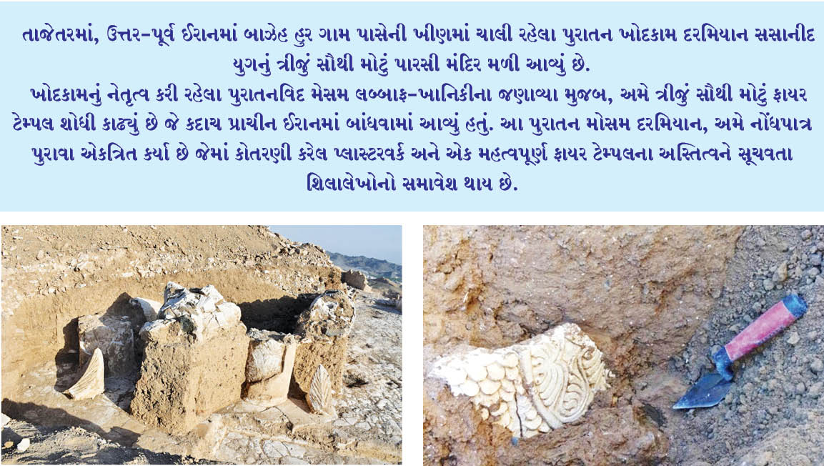 તાજેતરમાં, ઉત્તર-પૂર્વ ઈરાનમાં બાઝેહ હુર ગામ પાસેની ખીણમાં ચાલી રહેલા પુરાતન ખોદકામ દરમિયાન સસાનીદ યુગનું ત્રીજું સૌથી મોટું પારસી મંદિર મળી આવ્યું છે.