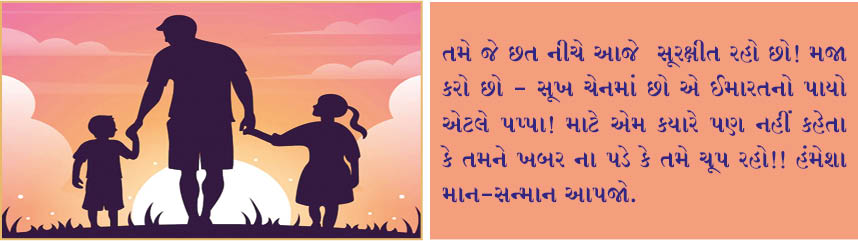 તમે જે છત નીચે આજે સૂરક્ષીત રહો છો! મજા કરો છો – સૂખ ચેનમાં છો એ ઈમારતનો પાયો એટલે પપ્પા! માટે એમ કયારે પણ નહીં કહેતા કે તમને ખબર ના પડે કે તમે ચૂપ રહો!! હંમેશા માન-સન્માન આપજો.
